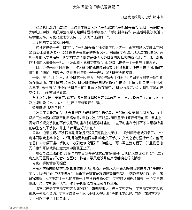 专家:手机暂存可提倡