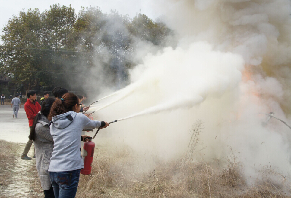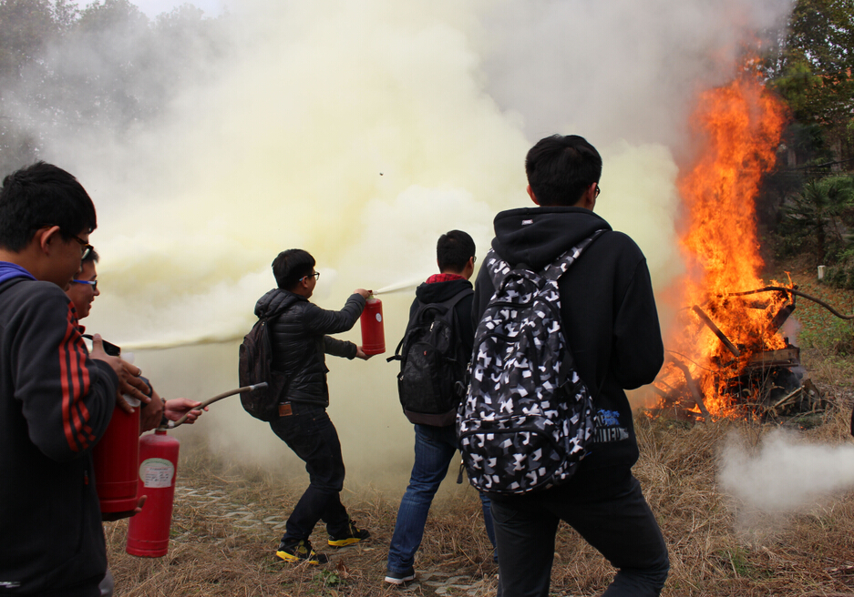 紧接着校区消防队毛队长向大家讲解和演示了如何使用灭火器材。在党委书记鞠明富宣布消防安全演练正式开始后,同学们走出文体馆,在院领导和义务消防员的带领下,亲身感受如何使用灭火器灭火,消防安全演练也在滚滚浓烟中圆满结束。