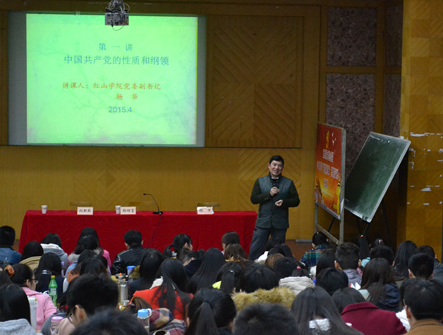 4月7日晚6:30,红山学院2015年上半年“党的发展对象”分党校桥头校区培训班开班典礼在三教报告厅顺利举行。红山学院党委书记鞠明富、党委副书记杨华出席大会,大会由团委副书记胡新蕲主持。桥头校区212名“党的发展对象”学员参加大会。
