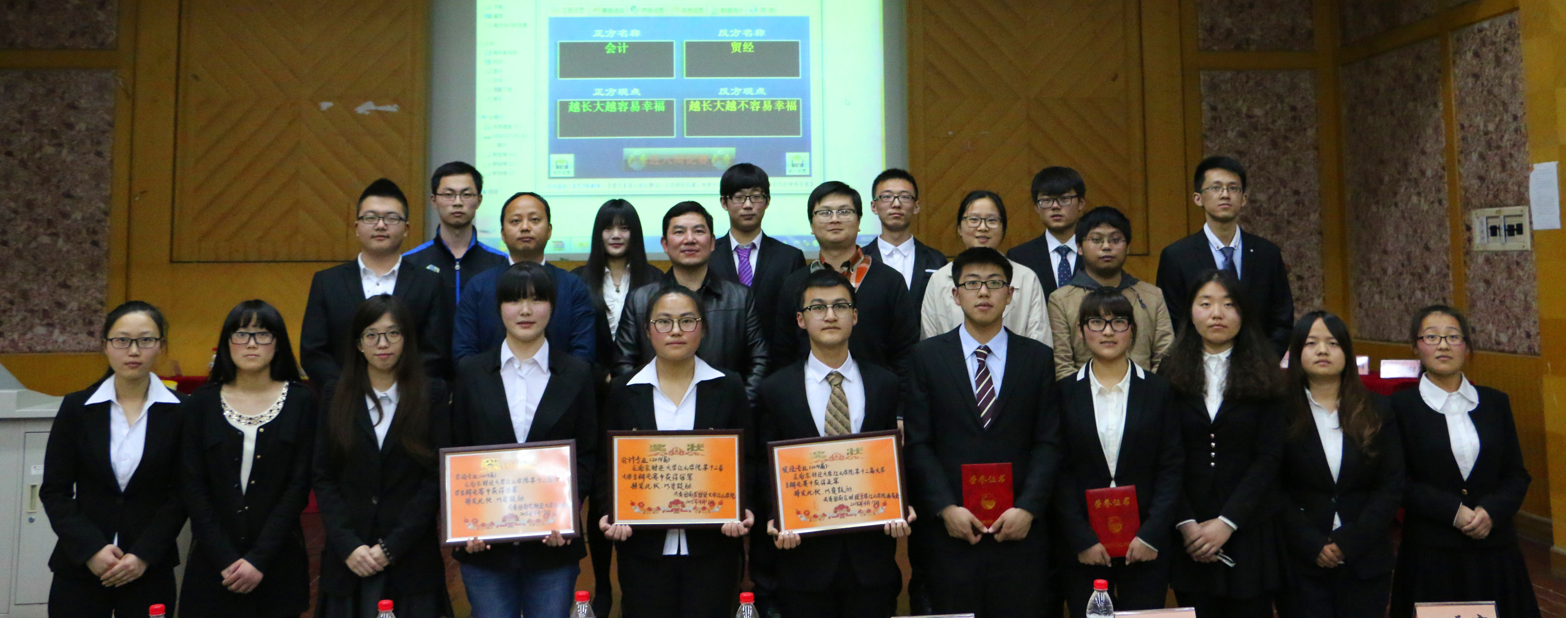 最后经过评委们的投票,正方会计专业队伍获得此次辩论赛的冠军,反方贸经专业队伍获得亚军。贸经专业的冯同祖同学被评为最佳辩手,会计专业的王玮同学被评为最佳风度奖。