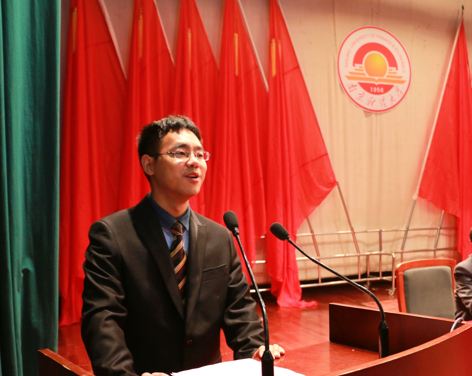 南京财经大学营销与物流管理学院张太海教授代表全体教师向毕业生们表示祝贺,希望他们走出校门后能永远保持对学习和思考的热情。校友代表2008届贸易经济专业毕业生,苏州戈必真金属材料有限公司总经理龚桃同志分享了他自己的创业经历,感恩母校培养了他积极乐观的心态和求真务实的态度。
