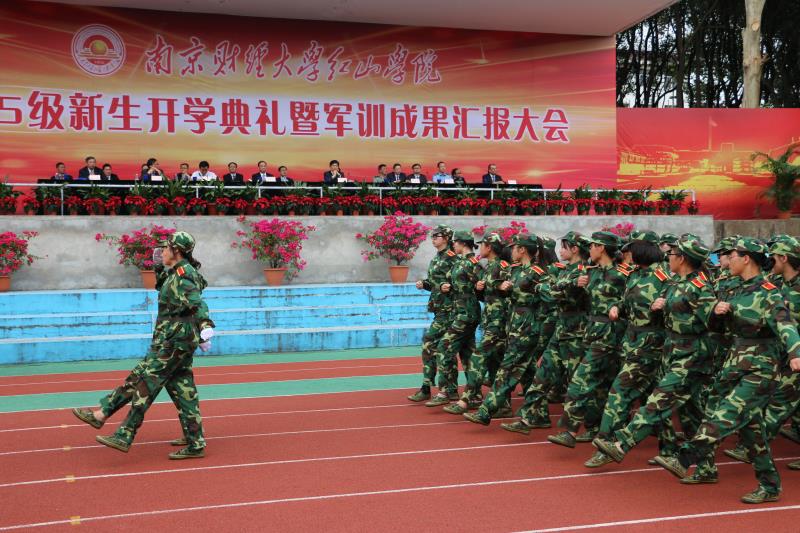 朝气蓬勃,意气风发;斗志激昂,豪情万丈。9月17日下午,南京财经大学红山学院2015级新生开学典礼暨军训成果汇报大会在桥头校区体育场隆重举行。南京财经大学党委书记陈章龙,南京财经大学校长、党委副书记宋学锋,副校长鞠兴荣,副校长俞安平,副校长、红山学院理事长华仁海以及承担此次军训任务的解放军94994部队中校韦国龙出席大会,南京财经大学相关部门负责人和红山学院全体院领导、有关老师,我校2000余名2015级新生参加了开学典礼暨军训成果汇报大会。