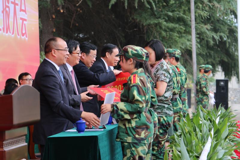 红山学院副院长杨军宣读了《关于颁发2015年优秀新生奖学金的决定》。其中,15名优秀新生获得一等奖(各5000元);20名优秀新生获得二等奖(各2000元)。相关校领导为优秀新生奖学金获得者颁奖。
