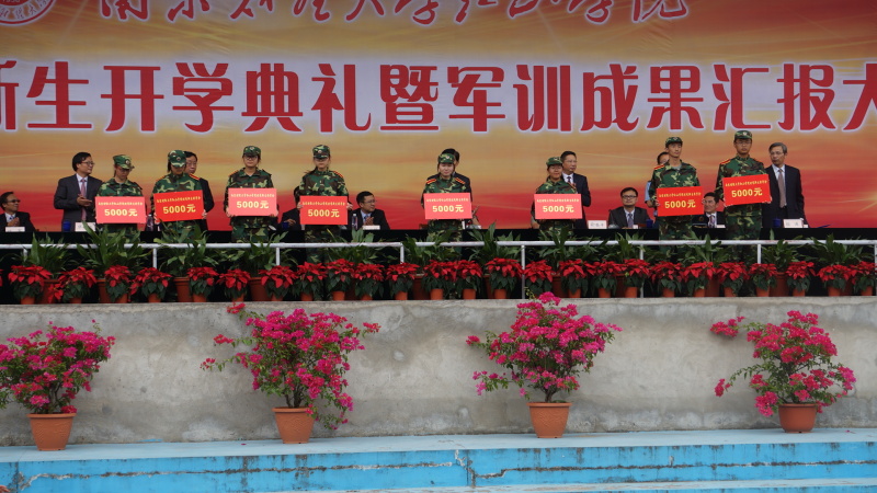 军训成果汇报表演结束后,红山学院党委副书记杨华宣读了《关于表彰2015级新生军训“先进集体”和“先进个人”的决定》,我院21个军训先进集体、200名军训先进个人受到表彰,相关校领导为获奖集体和个人代表颁奖。