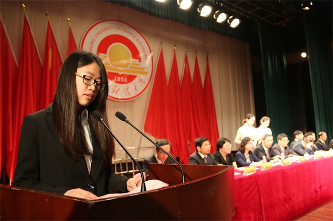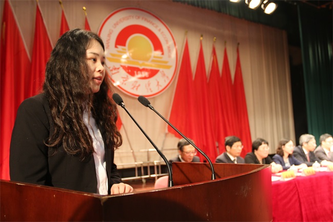 审计1351班王天颖同学代表全体在校生向学长学姐们送上最真挚的祝福,祝愿他们在未来的征程中驰聘万里,走出属于自己的精彩人生。会计1252班刘映秋同学、金融1252班李潇涵同学分别代表全体毕业生发言,他们向母校和老师表达了由衷的感谢和崇高的敬意,并表示将会永远铭记母校和师长的教诲,坚守梦想,奋发向上。