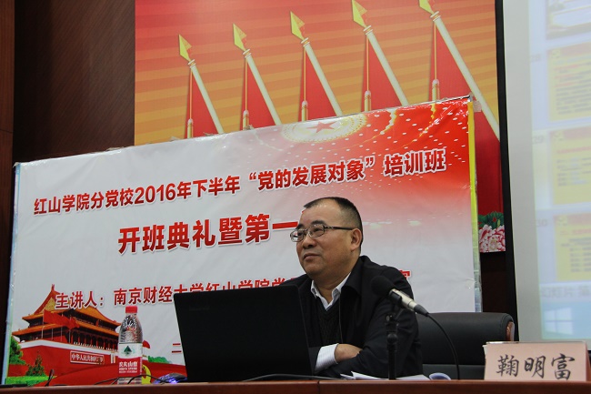 11月21日18时30分,我院分党校2016年下半年“党的发展对象”培训班开班典礼暨第一讲在四教报告厅顺利举行。红山学院党委书记鞠明富、党委副书记杨华出席开班典礼。典礼由团委副书记(主持工作)胡新蕲主持。桥头校区195名“党的发展对象”学员参加大会。