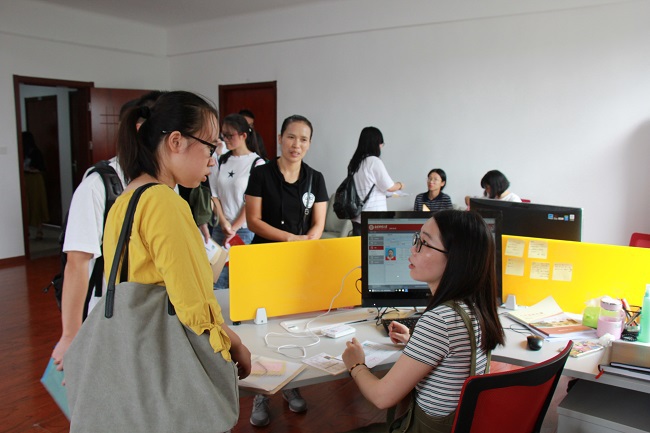 新生报到现场,接待点排列整齐、标识醒目;迎新工作人员认真解答新生和家长的问题。学院还专门设置入学“绿色通道”和资助政策咨询点,确保每一位家庭经济困难新生都可以顺利完成学业。学院团委招募的130余名志愿者,在校园、火车站、汽车站等各个迎新点,为新生和家长提供引导服务,成为迎新现场一道亮丽的风景线;学院团委专门为新同学设计的《新生入学指南》成了他们手中的“活点地图”。为解决学生家长的住宿问题,学院在文体馆设置了临时住宿点,供学生家长免费住宿。