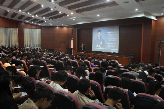下午,在四教报告厅,林肯大学客人为我院学生带来了英国留学专题讲座,副院长陈志琴、教务处处长李平等参加了讲座,讲座由陈志琴副院长主持。lan Barnes教授介绍了林肯大学的地理位置、生活环境、院系专业设置、入学要求等。张欣博士对英国留学的相关注意事项进行了讲解。讲座后,客人们还与我院学生进行了深入的的互动交流。