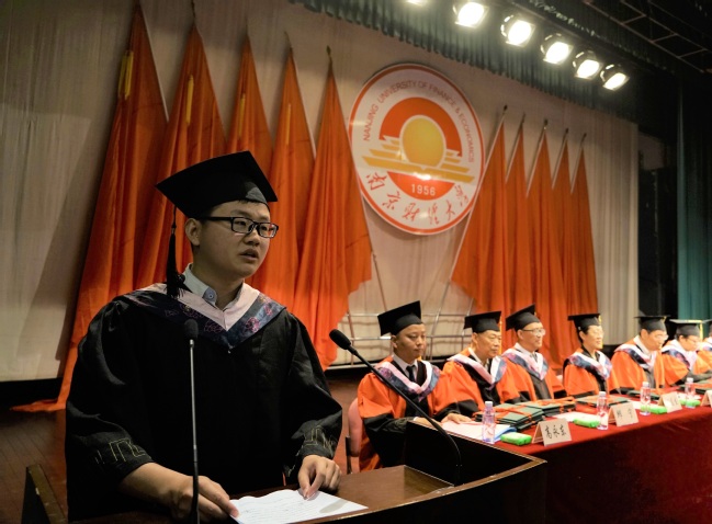 金融1451班陈志刚同学作为学士学位获得者代表发言