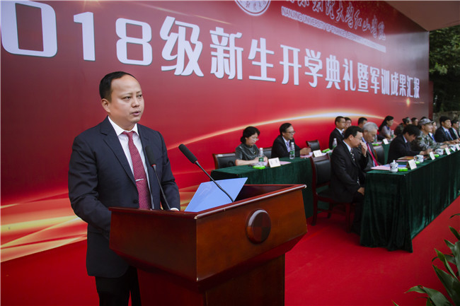 在庄严的国歌声中,2018级新生开学典礼正式开始。开学典礼由红山学院党委书记鞠明富主持。