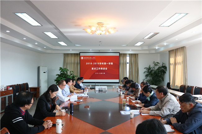 10月10日,我院2018-2019学年第一学期重点工作推进会在行政楼311会议室召开。全体院领导出席会议,各部门负责人、各系主任参加了会议。