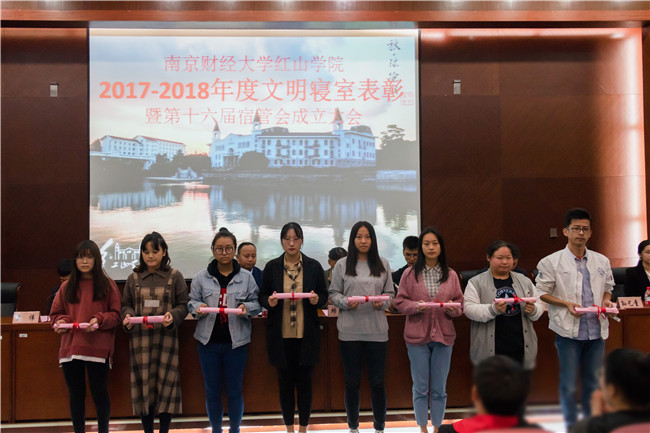 10月31日中午,由我院学生会宿管会主办的2017-2018学年“文明寝室”表彰暨第十六届大学生宿管会成立大会,在我院桥头校区四教报告厅顺利召开。红山学院党委副书记、副院长高永东出席大会,相关部门负责人参加大会。