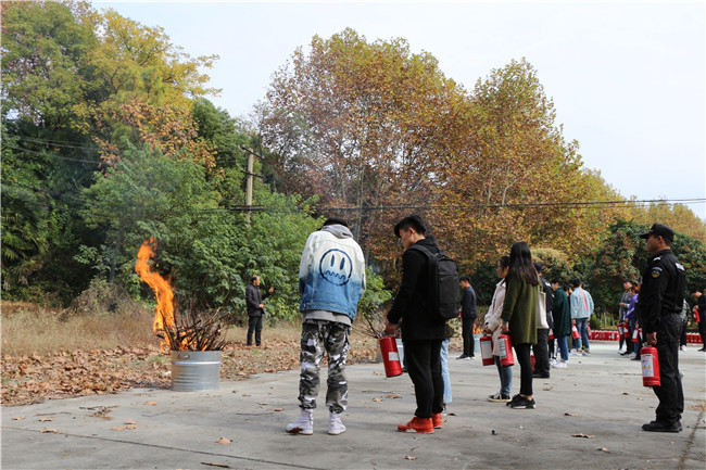 动员大会结束后,鞠明富书记宣布消防安全演习正式开始。同学们随后来到演练场,在院领导和义务消防员的带领下,分批有序地参加消防安全演练,切身感受灭火过程。