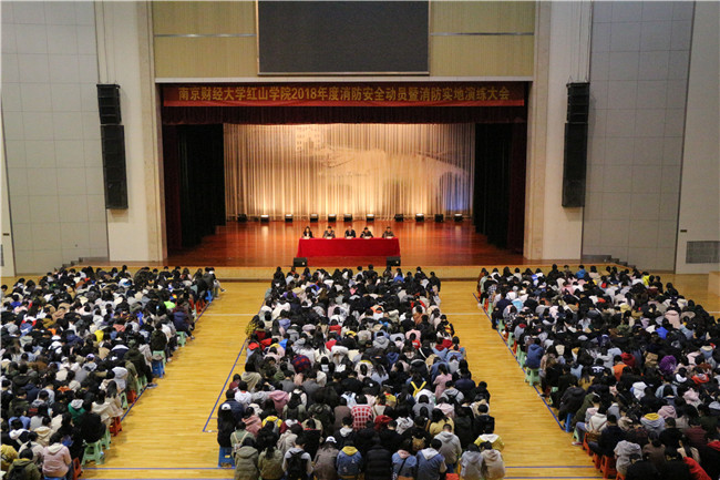 为进一步提高大学生安全意识,增强自我防护能力,11月12日中午,我院在桥头校区文体馆召开“2018年消防安全动员暨消防实地演练大会”。南京财经大学桥管会主任、红山学院党委书记鞠明富,桥管会副主任朱正飞、学生处处长邱宁、后勤管理处处长曹进出席大会,保卫科、院团委、公寓管理中心等职能部门老师和全体辅导员老师参加了活动。会议由曹进处长主持。