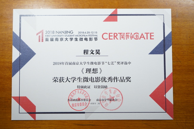 12月15日,由南京团市委、南京市学生联合会主办,江苏海郡艺术设计有限公司、南京海郡文化传播有限公司、中国邮政集团南京分公司承办的首届南京大学生微电影节闭幕式暨颁奖典礼在南京邮电大学仙林校区举行。我院程文昊、何心怡、敬怡然、傅聪同学报送的微电影《理想》荣获“优秀作品奖”。