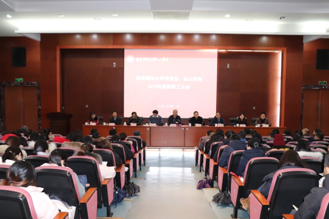 1月10日,南京财经大学桥头校区管委会、红山学院2019年教职工大会在桥头校区四教报告厅举行。南京财经大学桥头校区管委会、红山学院全体领导、教职工参加会议,会议由桥头校区管委会主任、红山学院党委书记鞠明富主持。