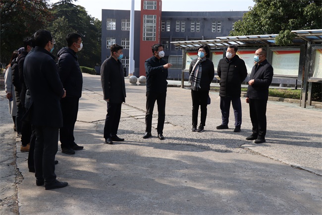 2月27日上午,校党委书记张利民到我院检查指导疫情防控工作。党委常委、副校长邱伟芬,下蜀镇党委书记郭江,副镇长杨正军一同参加检查。党校办主任孙彬,桥管会主任、我院党委书记鞠明富,院长李连军陪同检查。