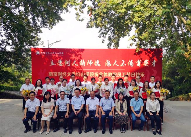 南京财经大学桥头校区管委会主任、红山学院党委书记鞠明富、院长李连军、执行院长朱兆健向获奖的优秀教职工颁发荣誉证书与鲜花。“十佳优秀教师”代表陈丹、“十佳优秀教育工作者”代表范书玉先后畅谈感悟。