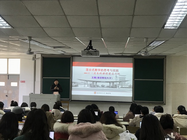 近日,南京财经大学经济学院教学名师、硕士生导师王庚教授作客“沐德学苑大课堂”,在桥头校区第四教学楼205作题为《混合式教学的思考与实践——以一流本科课程建设为例》的专题讲座。讲座现场邀请中国大学MOOC资深培训师雕心悦老师通过腾讯会议作线上讲座。讲座由副院长王晓庆主持,全体教师、辅导员聆听了讲座。