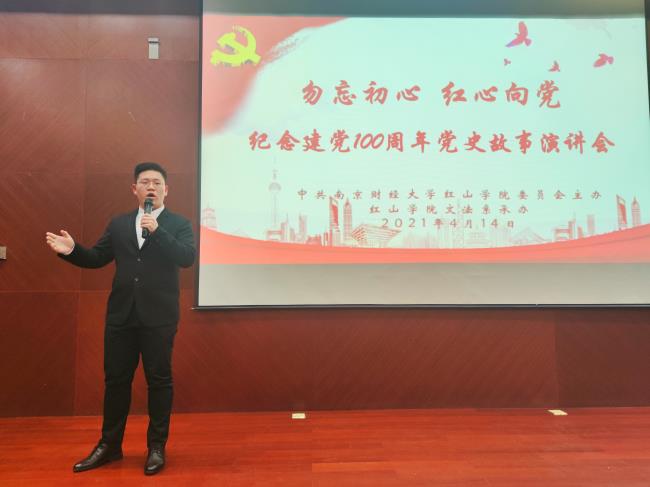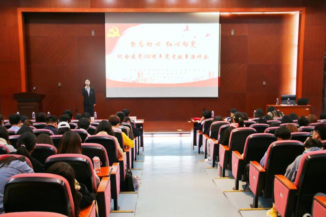 4月14日下午,桥头校区四教报告厅座无虚席,由红山学院党委主办、文法系承办的“勿忘初心 红心向党”党史故事演讲会吸引了众多师生到场观看。红山学院党委副书记、纪委书记高永东,党委副书记、副院长王晨婷,团委副书记(主持工作)千继贤,文法系主任金怡顺出席演讲会。