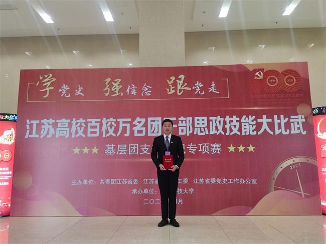 日前,由共青团江苏省委联合江苏省委教育工委、江苏省委党史工作办公室共同主办的“学党史、强信念、跟党走”江苏高校百校万名团干部思政技能大比武--基层团支部书记专项赛成功举办。我院张博同学在此次比赛中荣获二等奖。