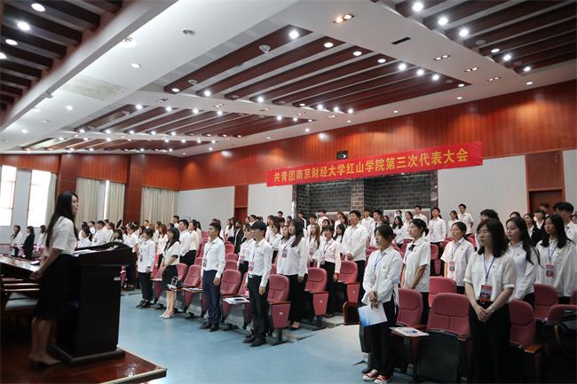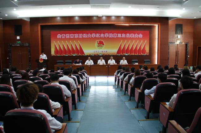 大会闭幕式上,总监票人报告选举结果,大会主持人宣读了共青团南京财经大学第三届委员会成员名单,按姓氏笔画排序分别是:千继贤、王海萍、卢美红、陈旻哲、宋婧、陈萱、苗志华、俞洪霞、胡婉君、韩娅、金翠翠、廉凯、孙嘉仪、储睿含、郭一博。随后,主持人宣读《共青团南京财经大学红山学院第三次代表大会决议》。在完成了大会的各项议程后,共青团南京财经大学红山学院第三次代表大会在《光荣啊,中国共青团》的歌声中圆满落幕。