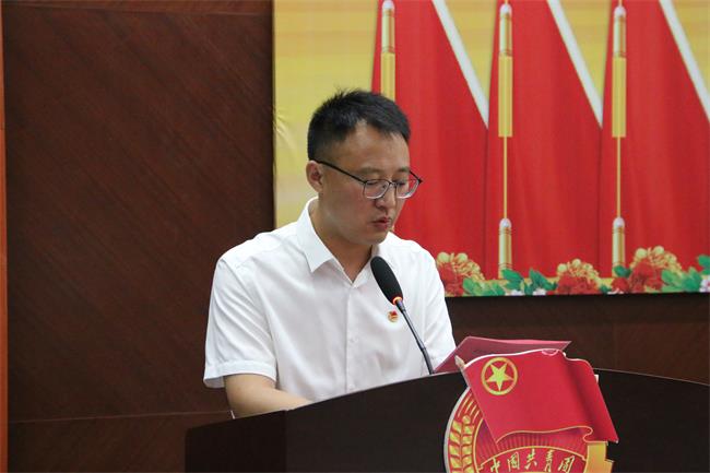校工会红山学院分工会主席李刚致辞。他对大会的顺利召开表示热烈的祝贺,并表示工会与共青团都是党领导下的群团组织,是党联系人民群众的纽带与桥梁,各群团组织要在院党委的坚强领导下,一如既往地互相学习、密切合作、团结奋斗,充分发挥各自的组织优势,为学校持续发展贡献才智和力量。