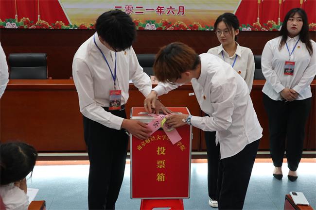 下午,在大会第二次全体会议上,与会代表审议通过了《关于共青团南京财经大学红山学院第二届委员会工作报告的决议》。在大会选举程序、选举办法以及大会选举工作人员名单宣读完毕后,与会代表以无记名投票的方式,进行新一届共青团南京财经大学红山学院委员会成员的选举。