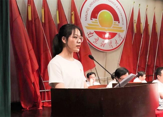 2022届毕业生代表、金融1854班徐巧婷同学发言,她分享了自己的大学学习经历和追求梦想的心路历程,代表全体毕业生感谢母校的辛勤培育,表示将时刻铭记校训,砥砺奋进,赓续芳华,为实现中华民族伟大复兴的中国梦贡献自己的青春力量。