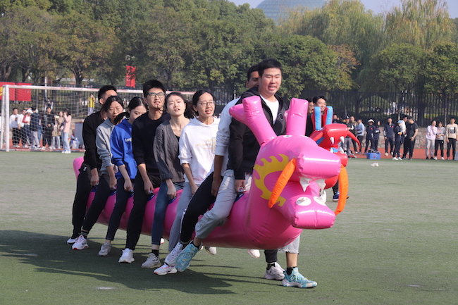 教工组“旱地龙舟”比赛剪影
