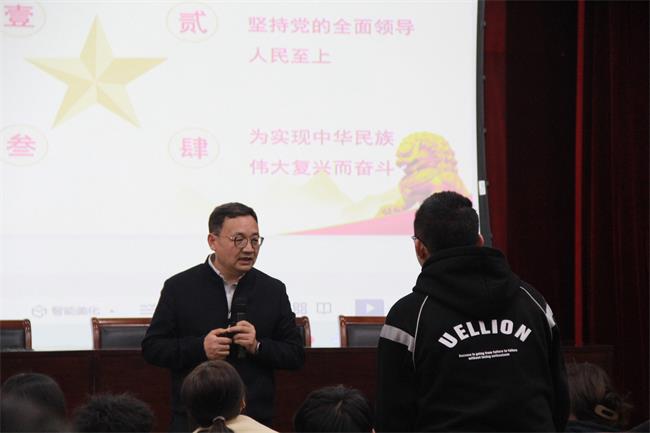 讲座最后,李连军院长从“两个确立”的重大意义、坚持党的全面领导、高质量发展、为实现中华民族伟大复兴而奋斗四个角度阐述了他对党的二十大精神的理解,勉励师生勇担时代赋予的责任。