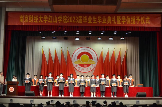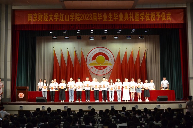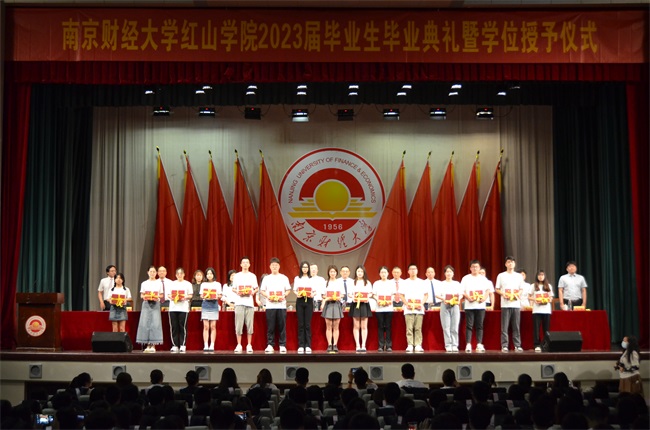 学院党委副书记、纪委书记高永东宣读《关于表彰南京财经大学红山学院2023届“优秀毕业生”的决定》,共有334名毕业生获得优秀毕业生称号。学院副院长王晓庆宣读《关于同意王志伟等2371名同学毕业的决定》。优秀毕业生代表及毕业生代表上台领取获奖证书和毕业证书。