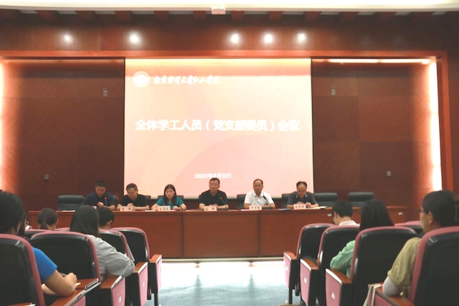 朱群主任宣读了《中共南京财经大学红山学院委员会关于调整基层党组织机构的通知》及干部任命的相关决定。姚学峰处长详细解读了学院二级管理规定,布置了近期学生管理重点工作任务。