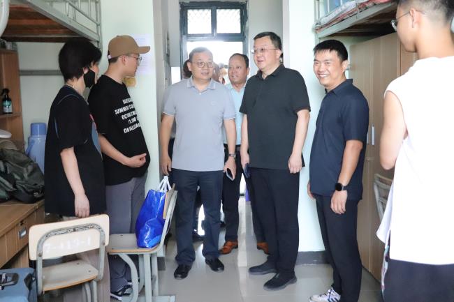 南京财经大学桥头校区管委会主任、学院党委书记孙彬,院长李连军到学生宿舍看望新生及家长