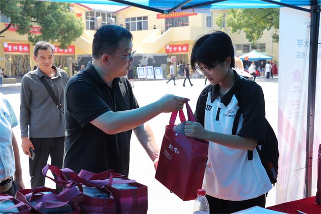南京财经大学桥管会主任、学院党委书记孙彬为新生送上礼包