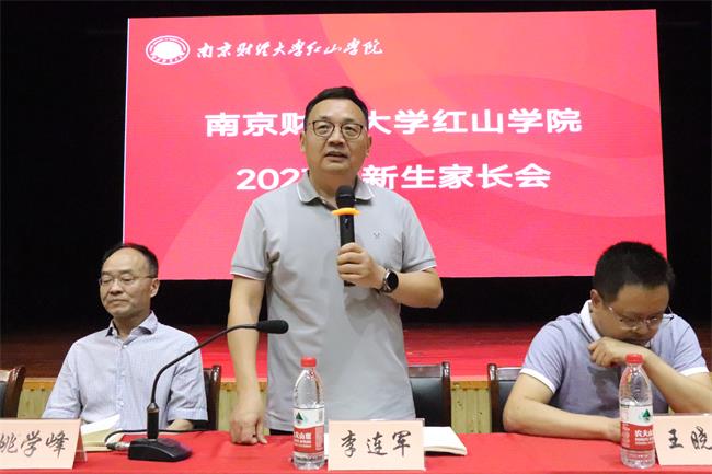 李连军院长代表学院对各位家长通过辛勤培育将自己的子女送到学院学习表示祝贺,感谢他们对学院工作的支持和肯定,详细介绍了学院办学历史、专业设置、师资力量、发展成就和迁址办学等情况。他指出,学院坚定不移地贯彻党的教育方针,坚持立德树人根本任务,按照“育人为本、质量为先、强化特色、改革创新、服务社会”的办学理念,为党育人,为国育才。他强调,学院党政和全体教职工将伴随着每一位学生在挫折和思考中跋涉成长,将学生的呼声为第一信号,以学生的需要为第一反应,想学生之所想,急学生之所急,关注学生的学习和生活质量,倾注更多的人文关怀,为学生的健康成长营造良好的育人环境。