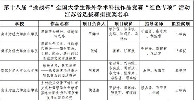 近日,第十八届“挑战杯”全国大学生课外学术科技作品竞赛“红色专项”活动江苏省选拔赛结果公布。我院荣获二等奖1项、三等奖3项的佳绩。