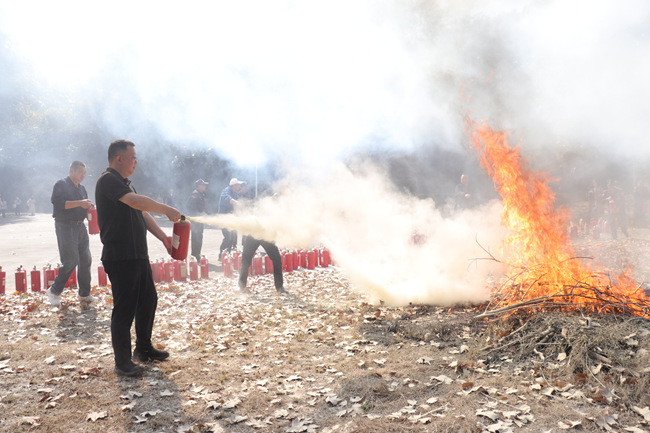 本次演练分两个环节,“灭火演练”和“火警逃生演练”。灭火演练前,盛建军副队长为在场师生详细讲解了灭火器的使用方法及注意事项,保卫科工作人员现场示范了灭火器的使用方法。消防演练中,师生准确操作使用灭火器,迅速将现场“火情”扑灭。
