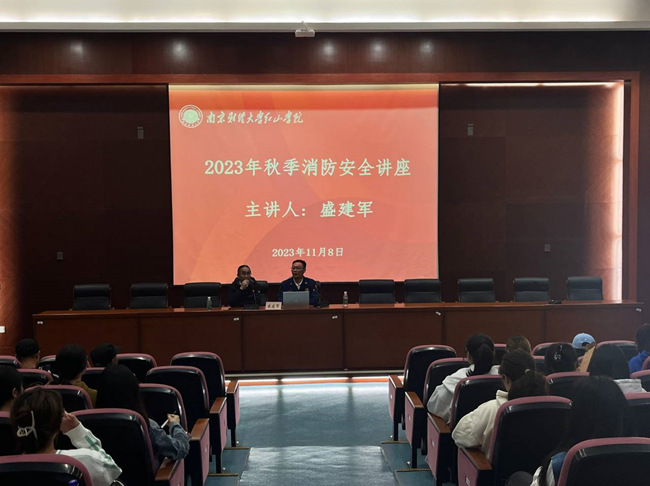 随后,盛建军副队长在四教报告厅为学院师生做2023年秋季消防安全讲座。他从消防安全的要求、火灾预警的基本概念、灭火的基本方法等方面进行了全面的讲解;提醒大家在遇到火灾时要保持冷静,寻找逃生,明辨方向,逃离火场,其中最为重要的是要根据实际火情选择合适的逃生方法。