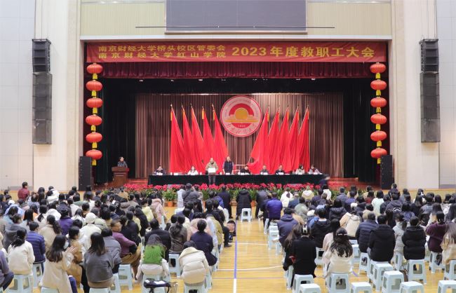 12月6日,南京财经大学桥头校区管委会、红山学院2023年教职工大会在桥头校区文体馆举行。南京财经大学桥头校区管委会、红山学院全体领导出席大会,全体教职工参加大会。大会由学院执行院长倪徵主持。