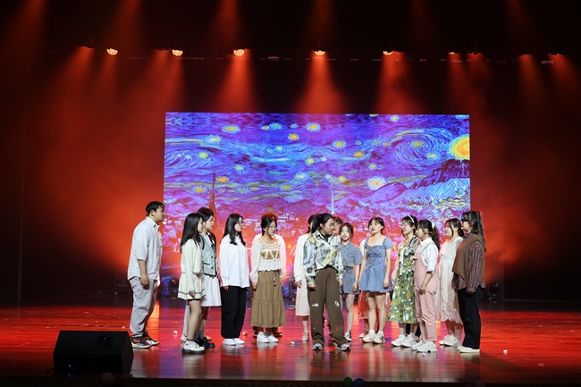 第二篇章“岁月韶华”在热烈的掌声中活力呈现。辩论社带来舞蹈《欢迎来到90年代》,铿锵有力的舞姿展现出昔日青年的活力与激情,激励当代青年不断砥砺前行。心理与健康协会带来心理剧《绘心》,鼓励观众打破定式,破除藩篱,乘风破浪,勇往直前。大学生创业协会小品《披星戴月地想你》风趣幽默,表演背后是生动感人的故事,淋漓尽致地展现青年人的深厚情谊。火舞堂的舞蹈《Push Play》舞步坚定,怀旧音乐搭配动感街舞,生动刻画当代青年对爱与正义的坚持,对光与未来的向往。