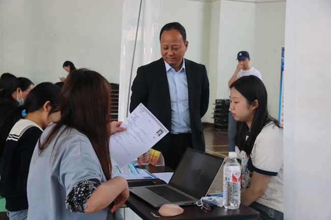 招聘会期间,学院党委副书记、纪委书记高永东,学生处、团委、各系部负责人来到现场,与用人单位进一步交流,了解就业市场行情和单位需求,鼓励同学们积极把握就业机会。招聘会现场同时播放地方政策宣传片,设有就业荐岗直播,为毕业生提供周到服务。