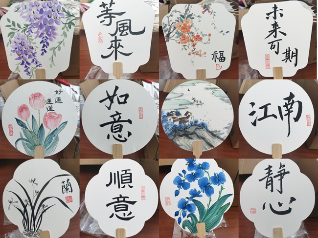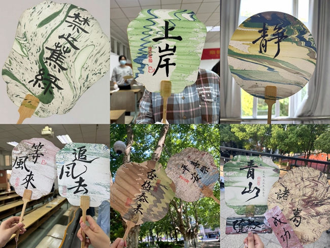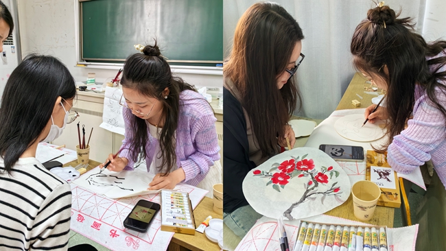 在实践环节,师生们挑选了自己喜欢的扇面形状,在胡婉君副书记带领下分为在扇面画和漆扇两个项目组进行制作。在邱丹老师和许艺蓝老师的指导下,大家纷纷拿起画笔或工具,沉浸在创作的乐趣中,用笔墨和色彩描绘出青春的活力和对传统文化的热爱。