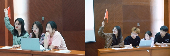 本次竞赛采用淘汰赛制,以抢答形式开展,设有三轮对决,竞赛题目难度层层递进。主持人发出“开始抢答”口令后,率先将小红旗举过头顶的队伍获得答题权。前两轮的每场比赛由抽到相同数字的两支队伍依次对决,进入第三轮的三支队伍同时对决,分高的队伍获胜。经过三个小时的激烈角逐,最终评选出一等奖队伍一支(张丽华、马钰晴、王雨凡、黄雨萌),二等奖队伍一支(陈阳、李文博、陶思成、黄宇彤),三等奖队伍一支(熊紫文、刘夕、陈斐、周嘉莺)及优秀奖队伍两支(章艳、陈恬恬、王满清、王庆秋,李昕乐、仓晟悦、莫万想、王琳)。