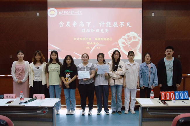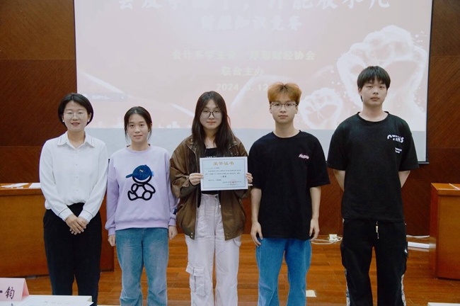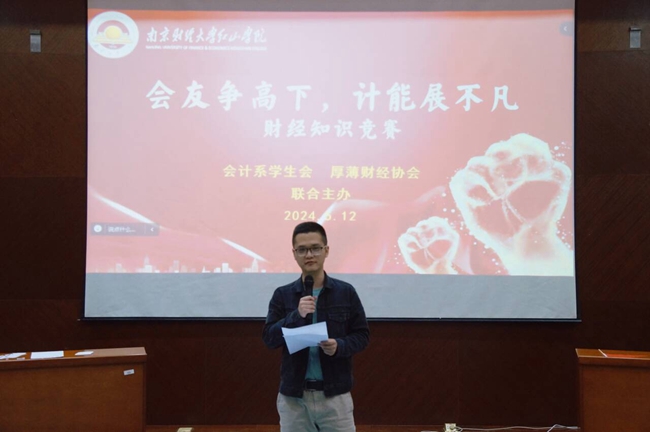 5月12日晚,会计系学生会与厚薄财经协会在桥头校区四教报告厅联合举办“会友争高下,计能展不凡”财经知识竞赛。会计系党总支副书记王颖,团总支书记李景程,教师钱盈裕、杨瑞春,学生会主席孙一钧,厚薄财经协会会长陈好,受邀担任活动评委。活动由会计2256班魏晨、审计2354班付伯宁主持,来自学院各系的11支参赛队伍积极参与。