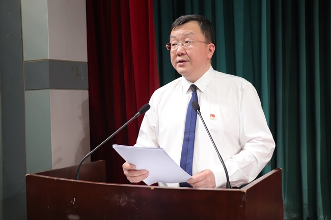 向大会作题为《抢抓机遇,砥砺前行——奋力谱写红山学院高质量发展新篇章》的工作报告