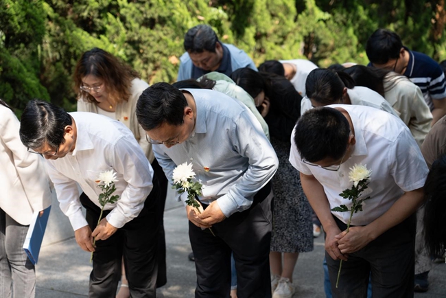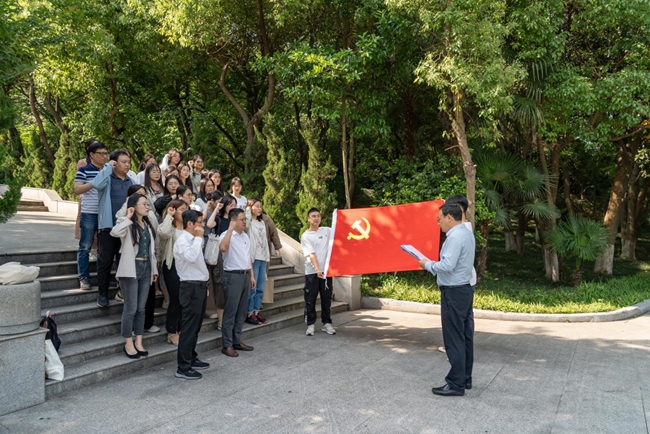 活动开始,全体师生党员前往晓庄英烈纪念碑和陶行知先生墓前凭吊默哀。学院院长李连军代表工商管理系党总支向晓庄革命烈士和陶行知先生墓敬献花篮并祭献鲜花,表达对革命英烈和陶行知先生的无限敬仰和崇高敬意。在晓庄英烈纪念碑前,李连军院长带领全体师生党员重温入党誓词,表达了全体师生党员对党的无限忠诚、为共产主义事业和教育事业奋斗终身的决心。