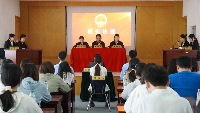 随后选取了具有代表性的党员干部滥用职权罪、贪污罪、受贿罪一案,以模拟法庭的形式创新化开展沉浸式党纪学习教育,由法学专业学生结合案情担任审判长、审判员、公诉人、辩护人、被告人、书记员、法警等角色,从法庭调查、举证质证、法庭辩论到当庭宣判,高度还原了真实庭审过程。现场严肃有序,融知识性、教育性、警示性于一体,对师生党员全面增强政治定力、纪律定力、道德定力、抵腐定力起到了充分的警醒作用。