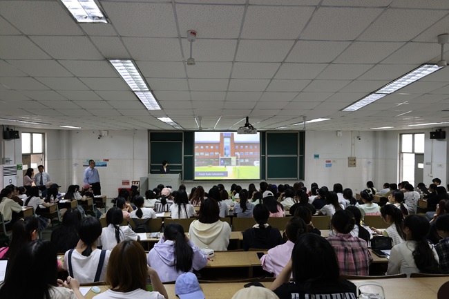 交流会结束后,在四教4203教室举行了林肯大学主题宣讲会。中国地区代表张欣介绍了林肯大学的地理位置、生活环境、院系专业设置、入学要求等方面情况。Ian Barnes教授为学生现场展示了一节生动活泼的经济学课程,深入浅出地讲授了数字货币的定义、本质、利弊等内容。讲座现场气氛热烈,主讲人员就同学们关心的问题逐一解答,鼓励同学们合理规划大学生涯,为求学深造打下坚实的基础。