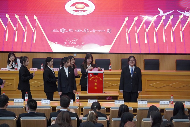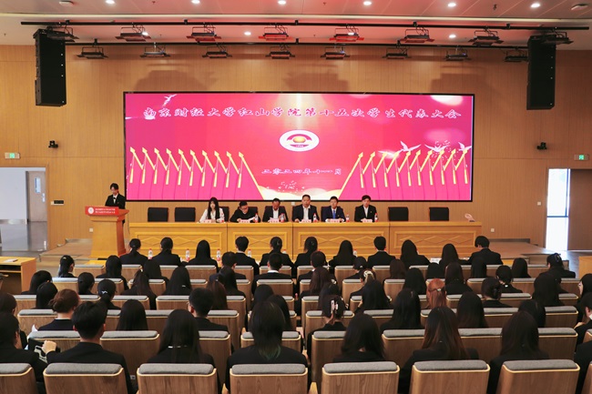 11月10日,我院在高淳校区第一报告厅召开第十五次学生代表大会。南京市高淳区团区委副书记解则义,学院党委副书记、纪委书记高永东,党委学生工作部、学生处(合署)处长印文郁,团委书记千继贤,各系团总支书记,学生会组织秘书长吴蓓等出席开幕式,南京财经大学学生会主席团候选人杨泽宇以及兄弟院校学生会代表应邀参加开幕式。全体学生代表参加大会。